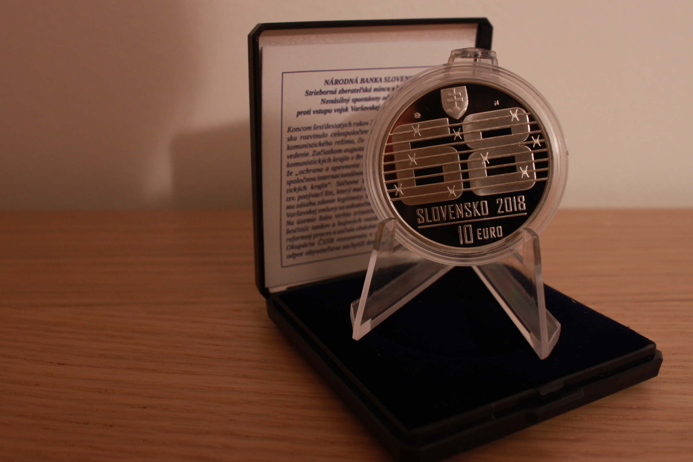 / 10 Euro – 2018 – Nenásilný spontánny odpor občanov proti vstupu vojsk Varšavskej zmluvy v auguste 1968 – Proof