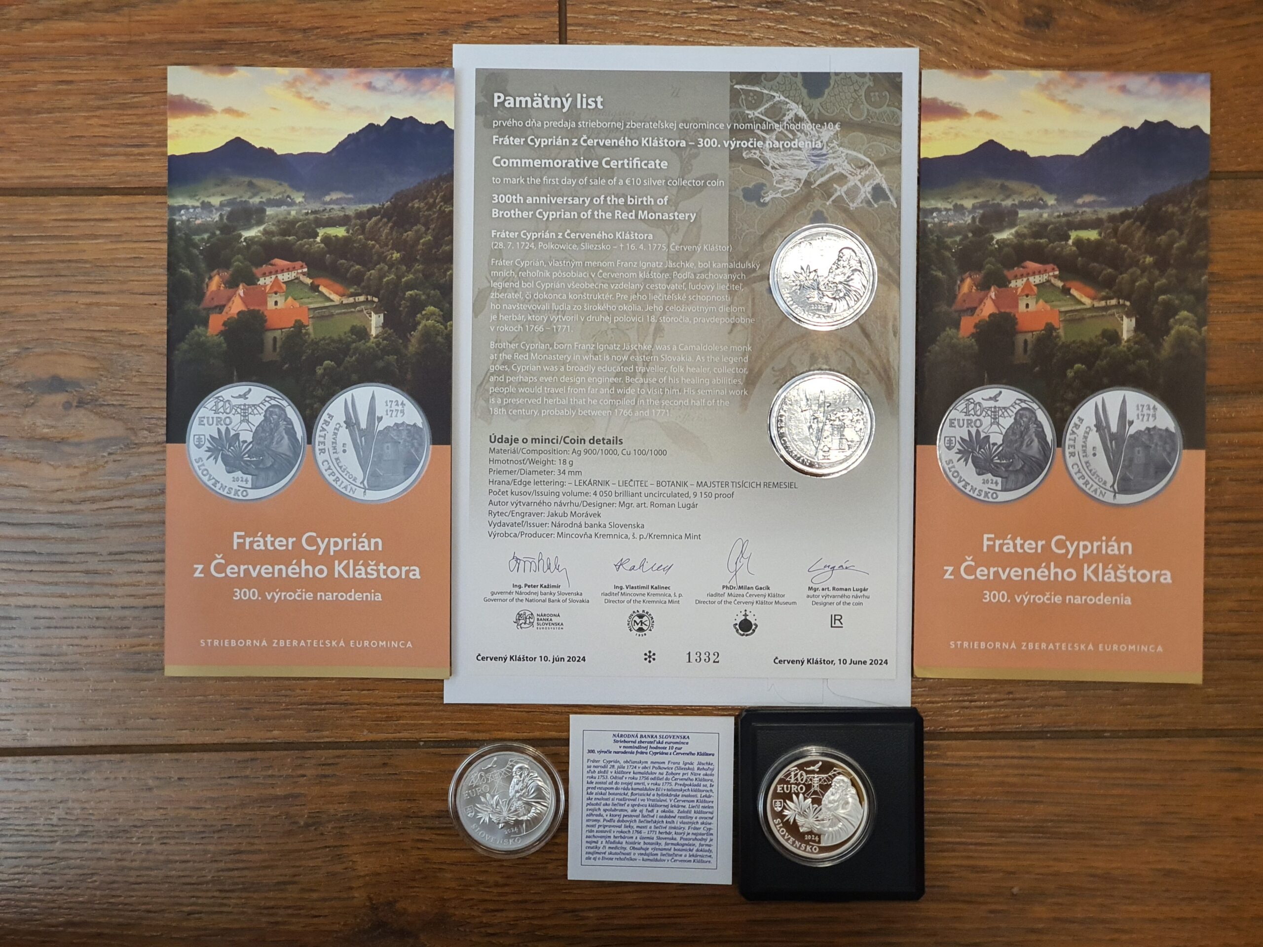 10 Euro – 2024 – Fráter Cyprián z Červeného Kláštora – 300. výročie narodenia – proof + bk + pamätný list