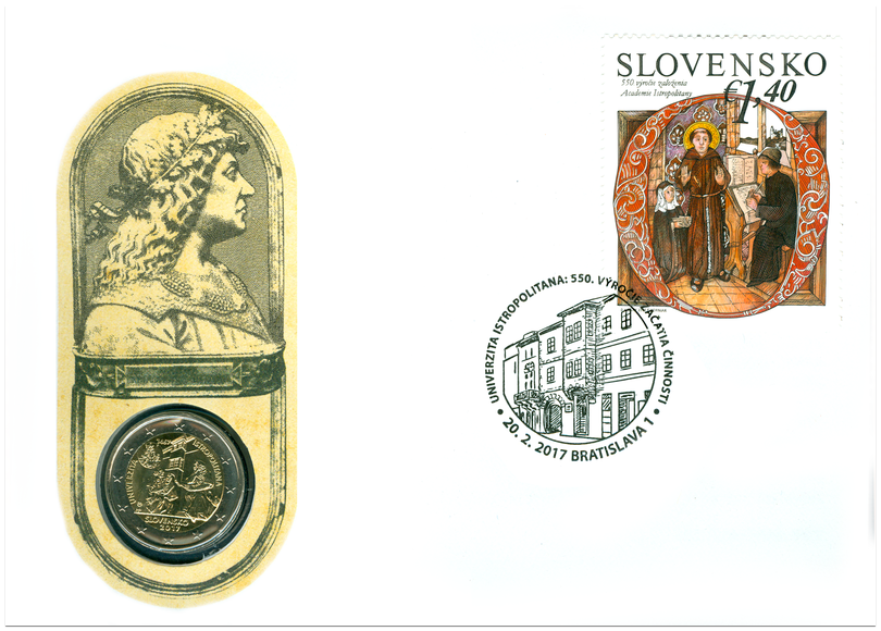 / Numizmatická obálka: 2 Euro – 2017 – Univerzita Istropolitana – 550. výročie začatia činnosti