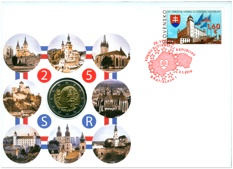 Numizmatická obálka: 2 Euro – 2018 – Slovenská republika – 25. výročie vzniku – UNC