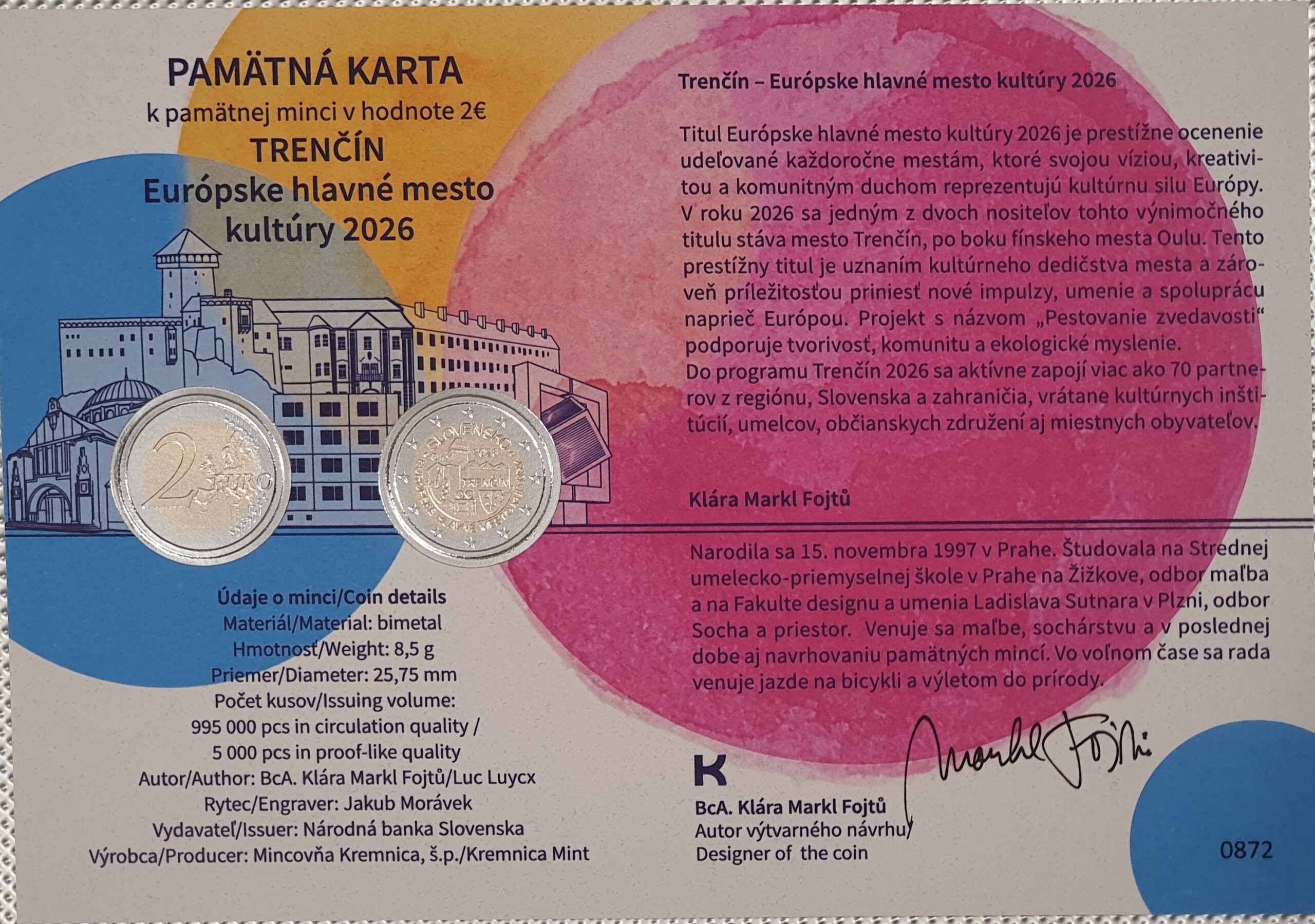 Pamätná karta – 2 Euro 2026 – Európske hlavné mesto kultúry 2026 – Trenčín